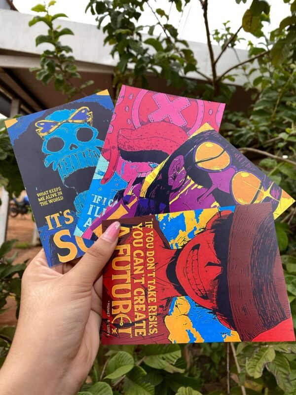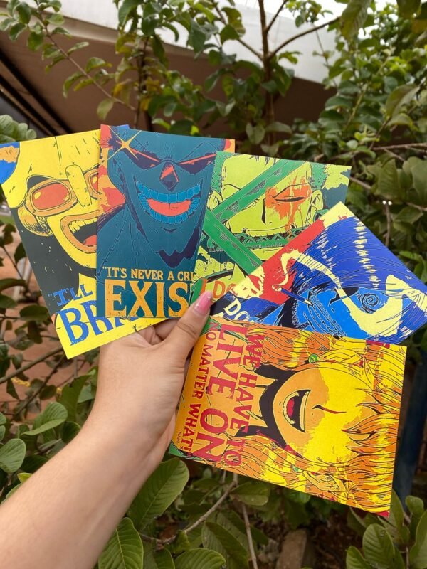 El set incluye 9 polaroids de los mugiwaras